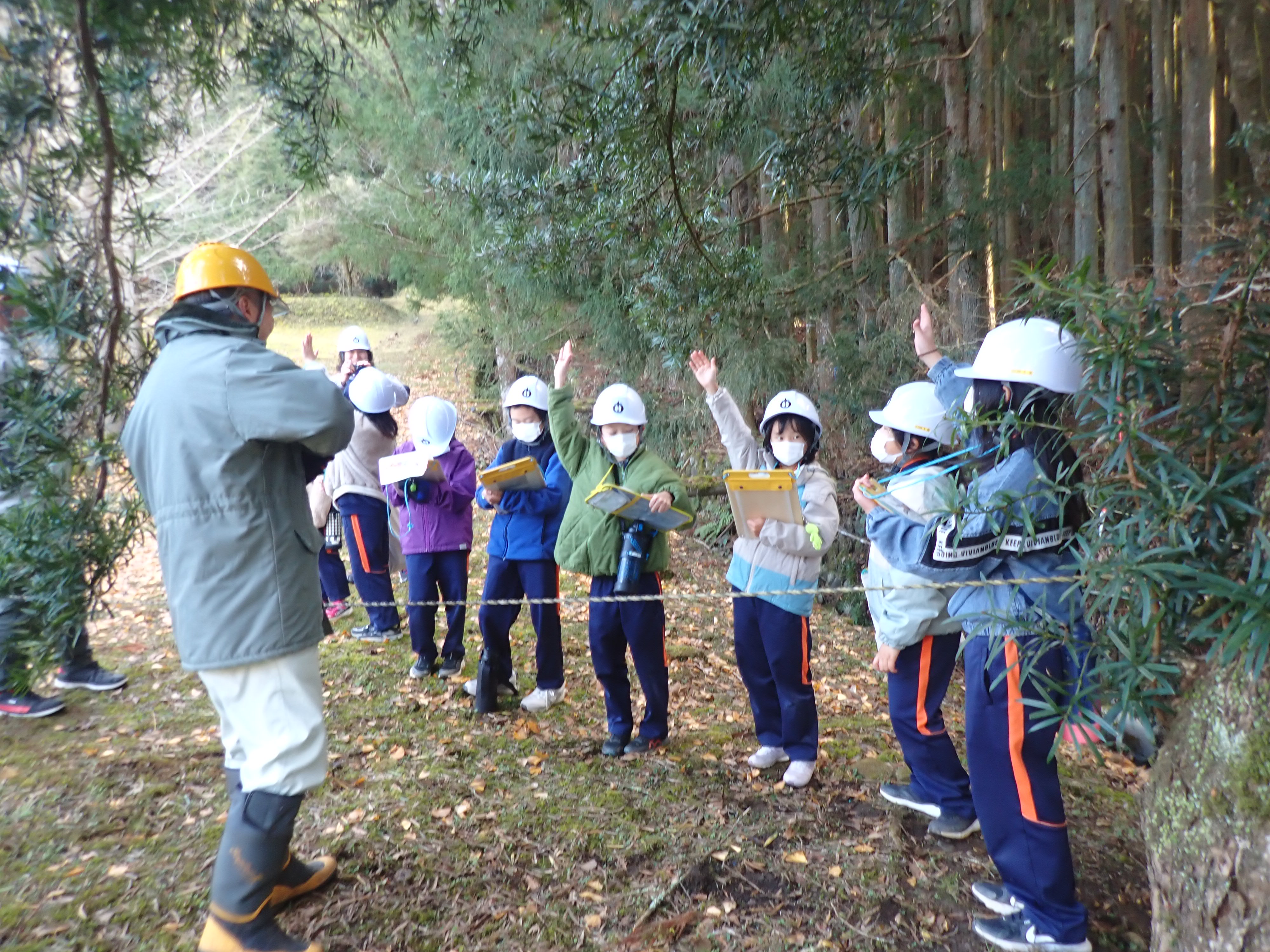 鳳来寺小学校より愛知県新設楽農林水産事務所 新城林務課に間伐作業現場見学ならびに林業講話の依頼があり、その内の間伐作業現場見学について、新城森林組合に協力依頼がありました。令和7年1 2月1 7日(水)に鳳来寺小学校4年生に新城市只持で間伐している、『あいち森と緑づくり事業』の現場において、間伐木の模範伐倒を実演し、その後の質疑応答の時間では、なぜ木を伐るのか・作業の大変さは等1人1つ以上の質問がありました。 新城森林組合だより第48号をアップしました。 前の記事 新城森林組合だより第49号をアップしました。 次の記事
